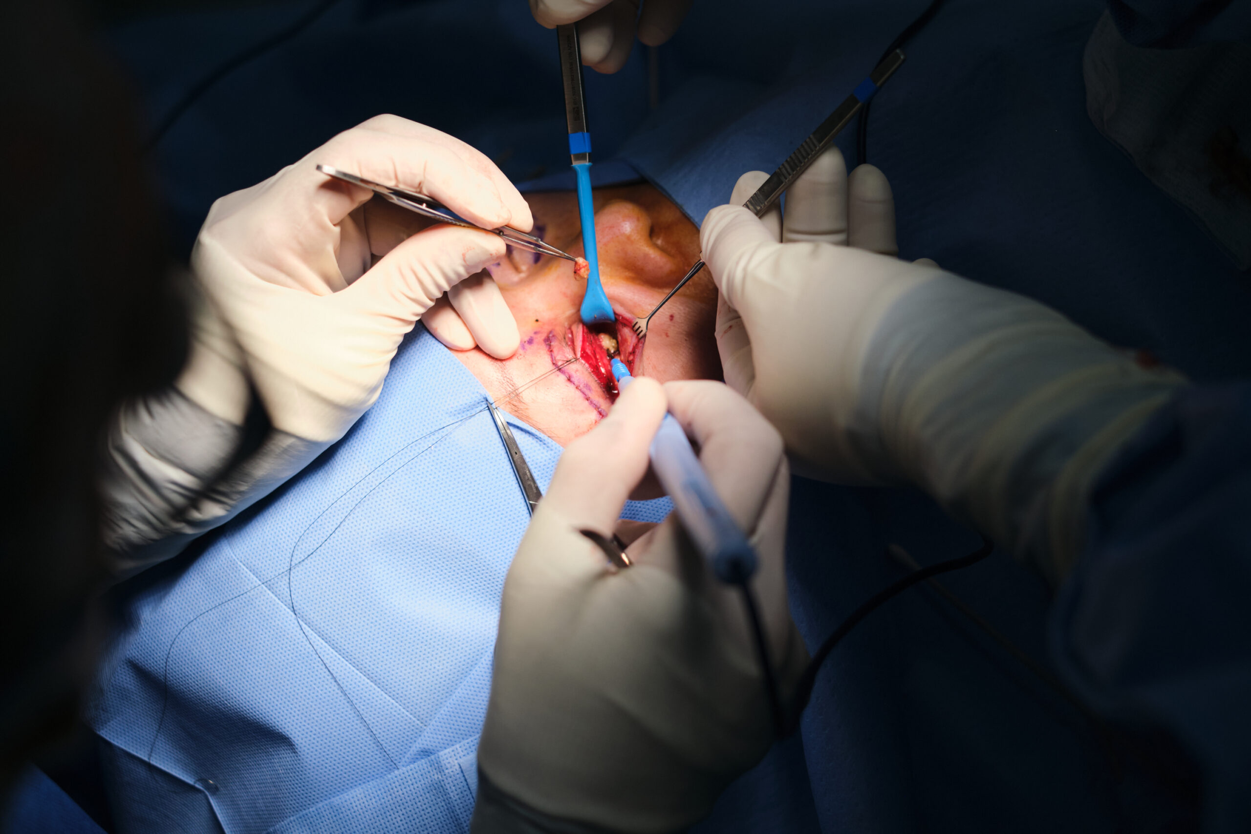 Any minor bleeding is carefully controlled using a special tool designed to seal blood vessels during the procedure. This keeps the surgical area clean and visible for the surgeon but also significantly reduces the risk of bruising and swelling after surgery, promoting a smoother recovery.